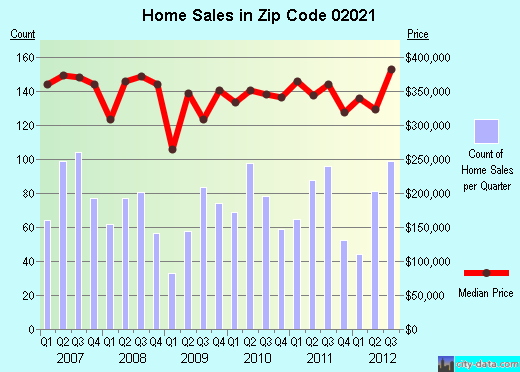 Condominium sales are quite brisk for an outlying suburban town. That said, the number of sales and the average sale price have not changed much in three years.