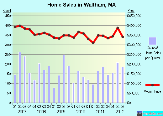 Waltham didn't much care for 2011 when it suffered a 6% decline in sales and values; but, thankfully, 2012 saw losses in values wiped out with a 13% increase in volume.