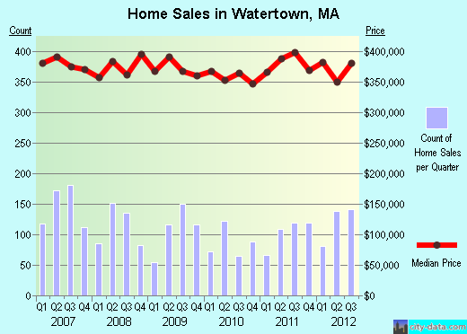 Although condominium sales in Watertown were way down in 2011, values were off 1%. A year later, volume soared 16% over the high of 2010 and essentially regained its lost ground in value.