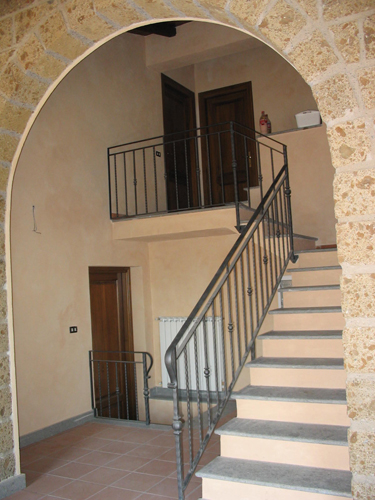 The doors at the top of the stairs lead into the two bedrooms. The door at the bottom of the stairs leads to the ground floor.